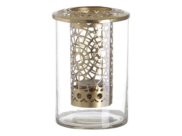 Elegantti lasinen kynttilälyhty, jonka reunukseen voi asettaa kukkia koristeeksi. Kynttilälyhty on 10 cm korkea.