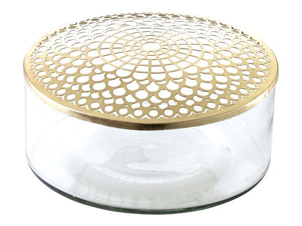 Kirkkaasta lasista ja messingistä valmistettu maljakko tanskalaiselta A Simple Mes -merkiltä. Maljakko on 10 cm korkea ja sen halkaisija on 20,5 cm.