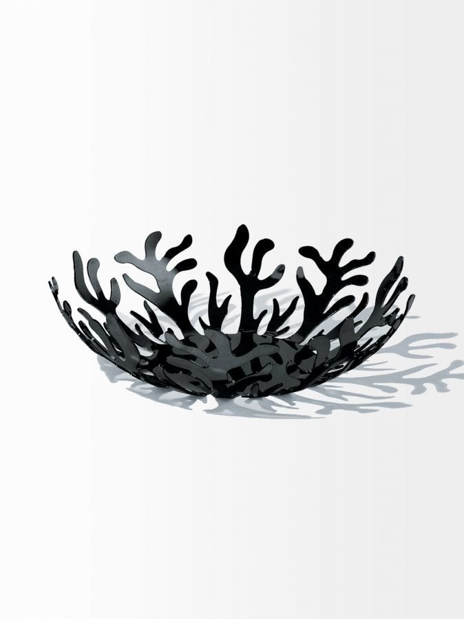 Veikeä hedelmäkori on keittiön kaunistus. Ruostumattomasta teräksestä valmistettu kulho on Emma Silvestrisin käsialaa. Halkaisija on 29 cm, korkeus 10,8 cm.