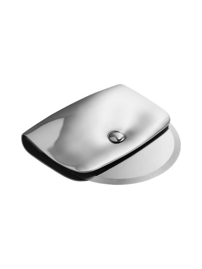 Valerio Sommellan suunnittelemassa pizzapyörässä on pehmeän sulava muotoilu. Pizzapyörässä on ikään kuin metallinen pussukka pyöreää terää suojaamassa. Materiaali on kestävää ruostumatonta terästä. Tyylikäs pizzaleikkuri tuo kauneutta arjen keskelle, itselle tai lahjana.