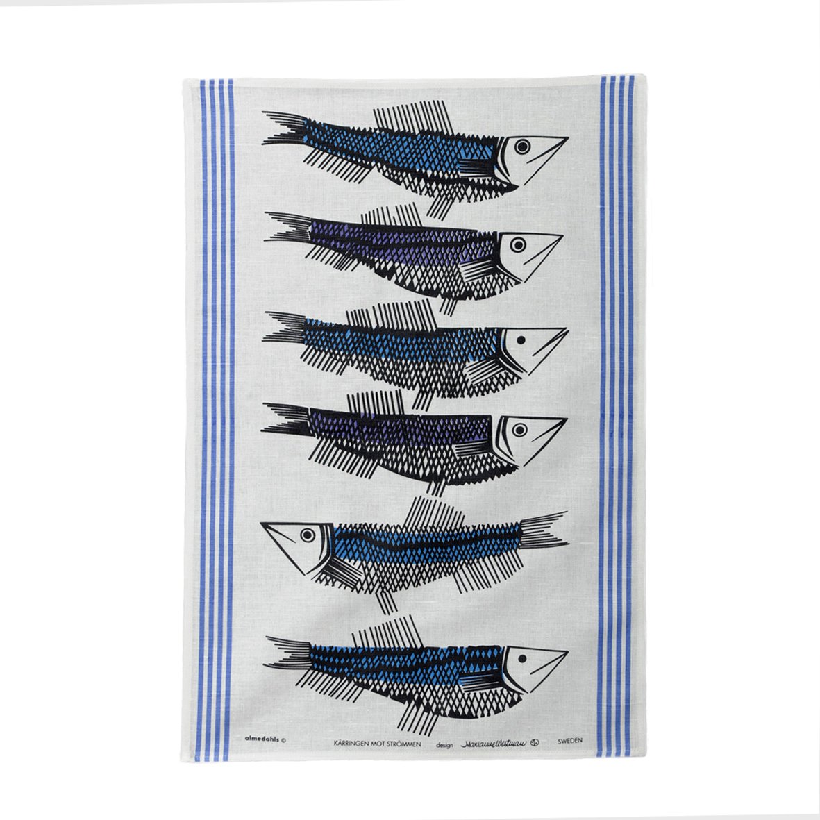 Tyylikäs Almedahlsin keittiöpyyhe jonka Marianne Westmanin ajaton 60-luvun humoristinen kuvio tuo retrohenkeä koko keittiöön. Keittiöliina on materiaaliltaan pellavaa ja puuvillaa ja se on konepestävä 60 asteessa.