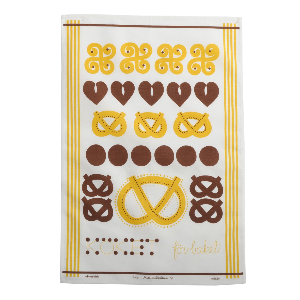 Tyylikäs Almedahlsin keittiöpyyhe ajattomalla Köket för Bakverk –kuviolla. Keittiöliina on materiaaliltaan pellavaa ja puuvillaa ja se on konepestävä 60 asteessa.