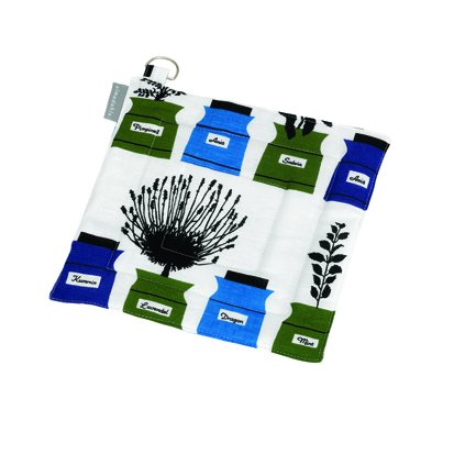 Tyylikäs Almedahlsin patalappu jonka Astrid Sampen klassinen Persons Kryddskåp –kuvio tuo retrohenkeä koko keittiöön. Patakinnas on materiaaliltaan pellavaa ja puuvillaa ja se on konepestävä 40 asteessa. Osta yksittäin, parina, tai yhdessä yhteensopivien uunikintaiden kanssa.