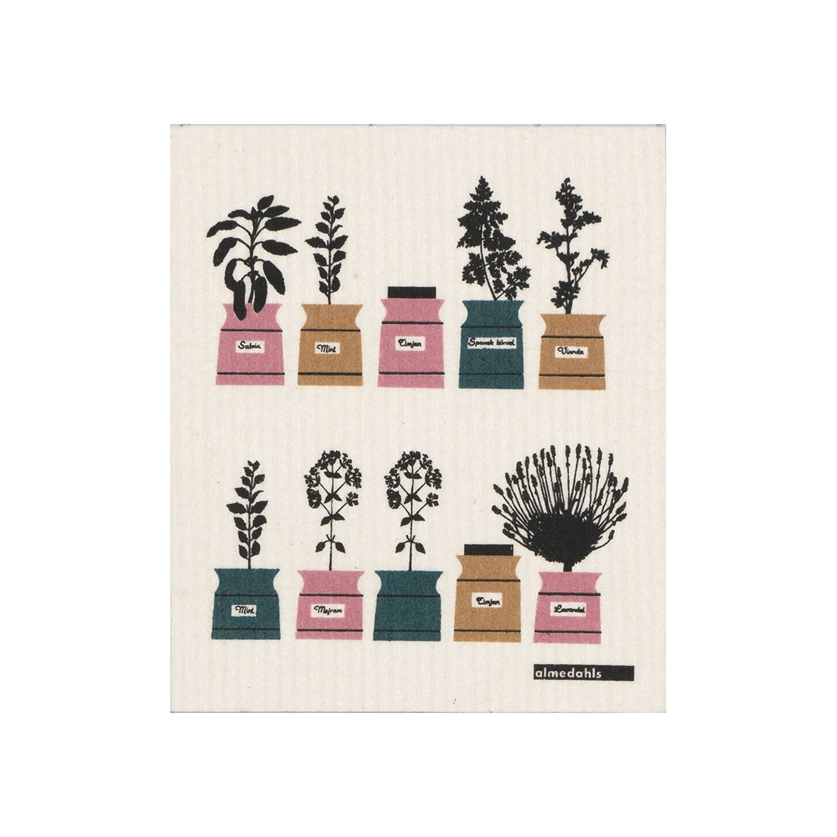 Kaunista tiskirättiä koristaa Astrid Sampen kalssinen Persons Kryddskåp -kuvio. Almedahlin retrotyylinen tiskirätti on painettu ympäristöystävällisillä, vesipohjaisilla väreillä. Tiskirätti on 100 % kompostoituva ja se kestää konepesun max. 90 º C.