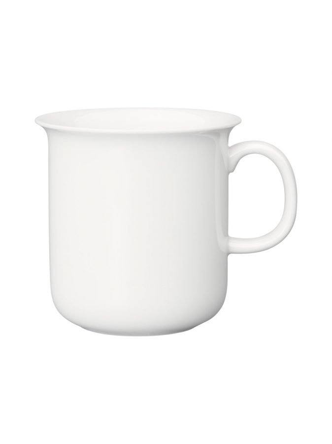 Selkeälinjainen ja puhtaanvalkoinen muki on uunin-, mikroaaltouunin- ja konepesunkestävää posliinia.
