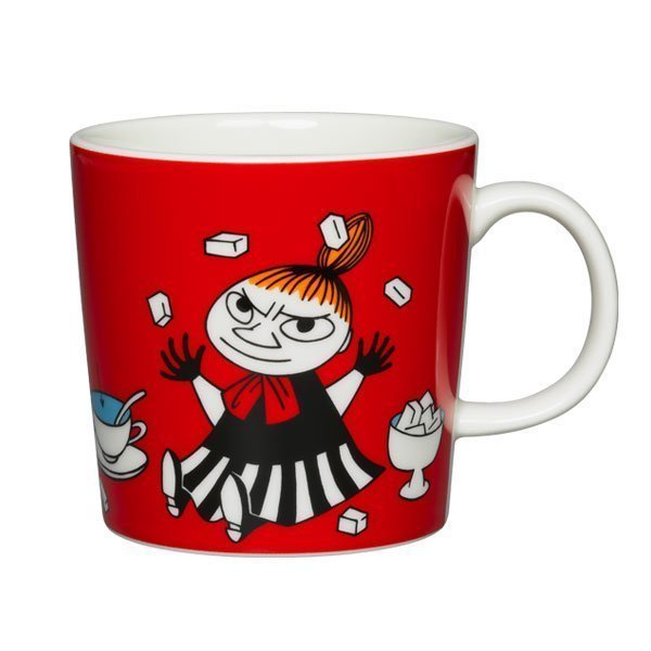 Arabian punaista Pikku Myy -mukia somistaa hauska printti, jossa Pikku Myy jonglööraa sokeripaloilla mustavalkoisessa mekossa. Keraamisella mukilla on valkoinen kahva ja sisäpuoli, ja sen tilavuus on 3 dl. Arabian Muumi-mukit ilahduttavat kattauksessa, ja sopivat niin teen, mehun kuin kuuman kaakaonkin tarjoiluun.