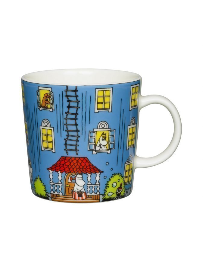 Muumitalon ovia ei lukita koskaan! Tervetuloa ihastuttavan ja kaikille tutun Muumitalon maailmaan, jossa vieraat otetaan avosylin vastaan. Muumitalo-muki juhlistaa Muumien 70-vuotista olemassaoloa ja on osa Muumi-hahmojen koristamien klassikkomukien sarjaa. 70-vuotisjuhlamukin pakkauksen mukana tulee pahvinen katto. Muki on konepesun ja mikroaaltouunin kestävää posliinia.