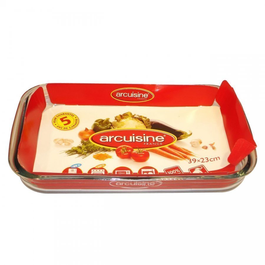 Suorakaiteen muotoinen uunivuoka. Koko 39x23cm. Korkeus 7 cm. Valmistettu lasista.