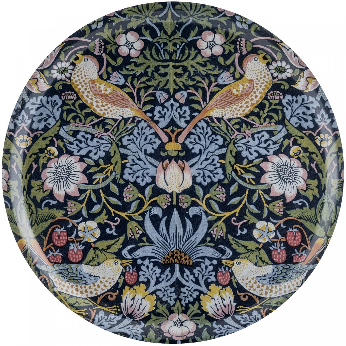 Tarjotin on halkaisijaltaan 38 cm ja kuuluu Åry Home -tuotemerkin sarjaan Strawberry Thief. Strawberry Thief on yksi taiteilija William Morrisin tunnetuimmista kuoseista. Tarjotin on valmistettu puuvanerista jota suojaa kerros melamiinia. Konepesun kestävä.