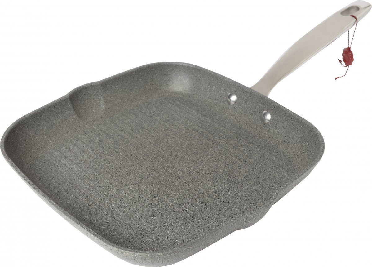 Tyylikäs Ballarinin grillipannu, jonka pintamateriaali on valmistettu kivestä ja mineraaleista, jonka ansiosta ruoka saa kauniin ja rapean paistopinnan. Grillipannu on pinnoitettu kuuteen kertaan erilaisilla pinnoitteilla ja pohja on alumiininen. Pannu kestää metallisetkin keittiövälineet, sopii kaikille liesitasoille ja on uuninkestävä aina 230 asteeseen saakka. 10 vuoden materiaali- ja tuotantovirhetakuu. Konepesun kestävä, mutta käsinpesu suositeltavaa.