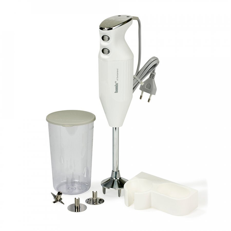 Bamix-maailman ensimmäinen sauvasekoitin, säilyy sukupolvelta toiselle! Soveltuu erinomaisesti keittojen ja smoothien valmistamiseen. Tehokas, kestävä ja hiljainen sauvasekoitin monipuolisilla ominaisuuksilla. Bamix 140 on helppokäyttöinen ja korkealaatuinen sauvasekoitin joka sopii niin kotikäyttöön kuin ammatikeittiöihin. Tehokas monipuolinen sauvasekoitin. Teho 140W. Laitteen osat huippulaatuista ruostumatonta terästä, runko on tuplaeristetty. Soft grip kahva. Johdon pituus: 1,9m. Toimitetaan lahjapakkauksessa. Mukana teline seinäkiinnitystä varten, yleisterä, kaksi erilaista vispilää ja 600ml sekoituskulho kannella. Käyttöohjeet ja reseptit sisältyvät (eng).