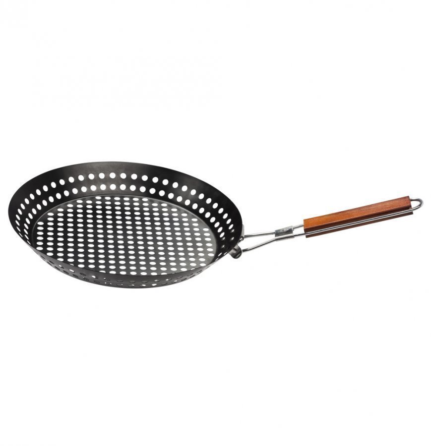 BBQ King -kasvispannulla paistat kätevästi kasvikset grillissä. Pannun halkaisija on 30,5 cm. Tarttumaton non stick -pinnoite. Taittuva kahva helpottaa säilyttämistä.