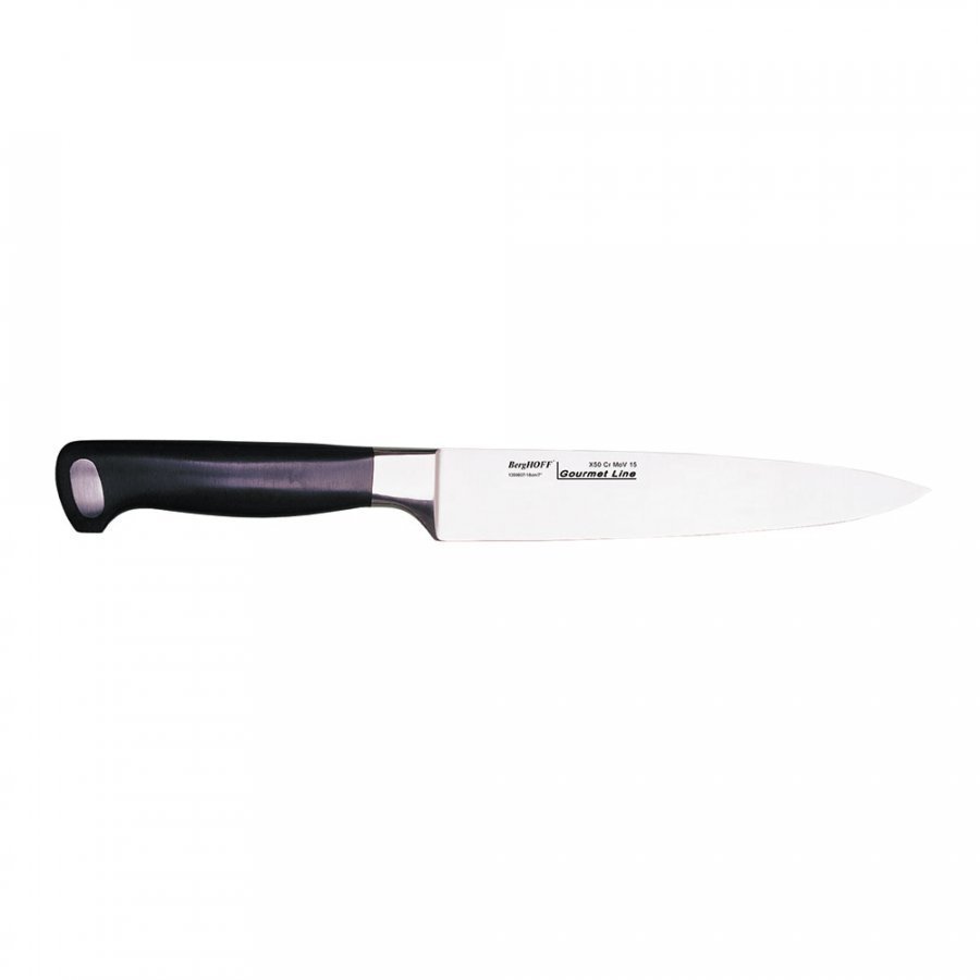 Berghoff-veitsi on valmistettu ruostumattomasta teräksestä, ja kahvassa on ergonominen muotoilu, jonka avulla veistä on turvallista ja kätevää pidellä. Terässä on täydellinen tasapaino ja paino käytön helpottamiseksi. Se on myös helppo teroittaa.