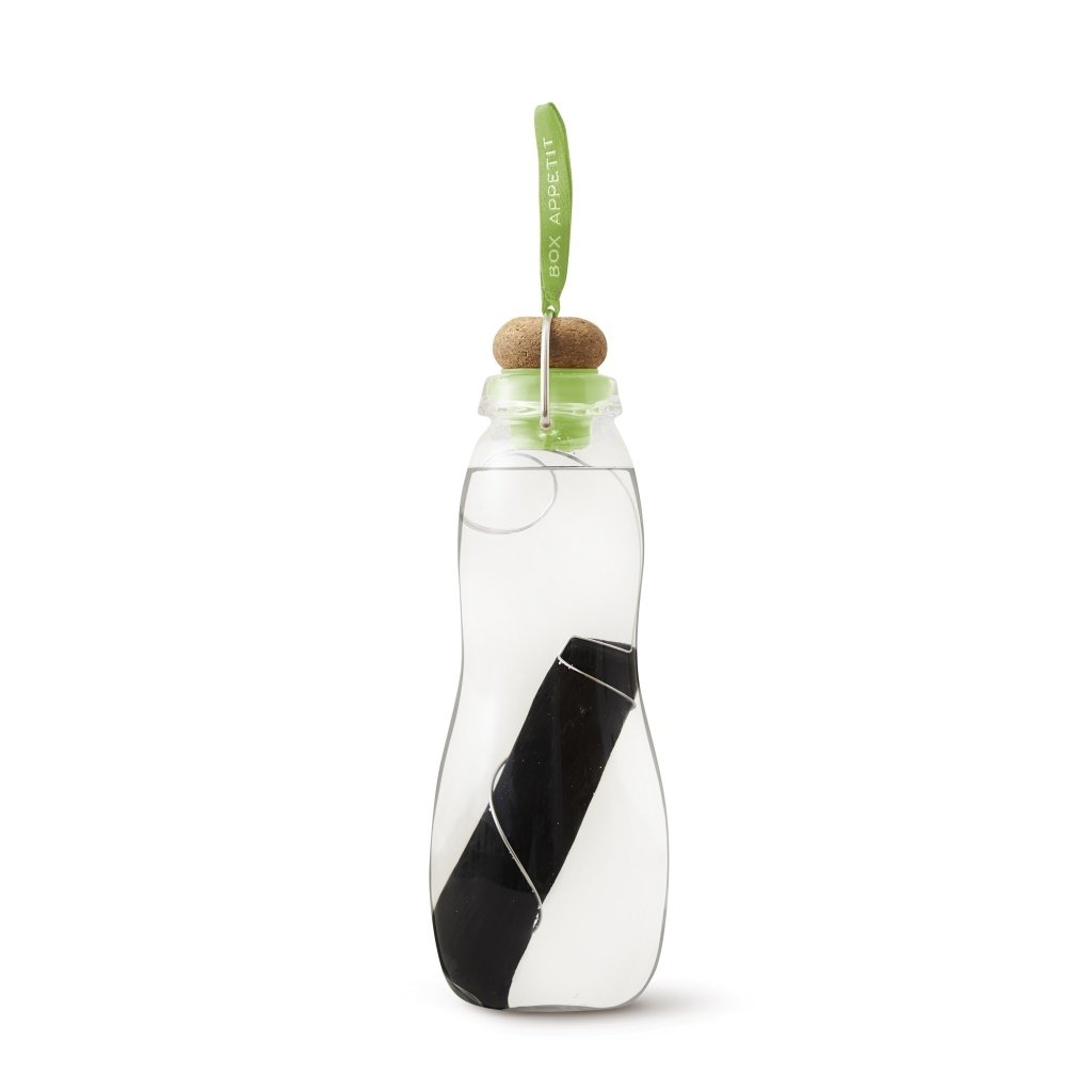 Black+Blumin tyylikkäässä lasipullossa on kauniit limenvihreät yksityiskohdat. Japanilainen hiilisuodatin tunnetaan myös nimellä aktiivisena hiilenä, joka suodattaa klooria sekä tasapainottaa pH-arvoa. Hiilestä vapautuu veteen erilaisia mineraaleja, kuten rautaa, kalsiumia ja magnesiumia, mikä parantaa veden makua sekä terveysvaikutuksia. Voit säilyttää pulloa jääkaapissa, niin sinulla on aina kylmää vettä juotavaksi. Pullo sopii erinomaisesti mukaan otettavaksi esimerkiksi treeneihin tai matkoille. Pulloa voi myös käyttää tavallisena vesipullona ilman hiiltä.