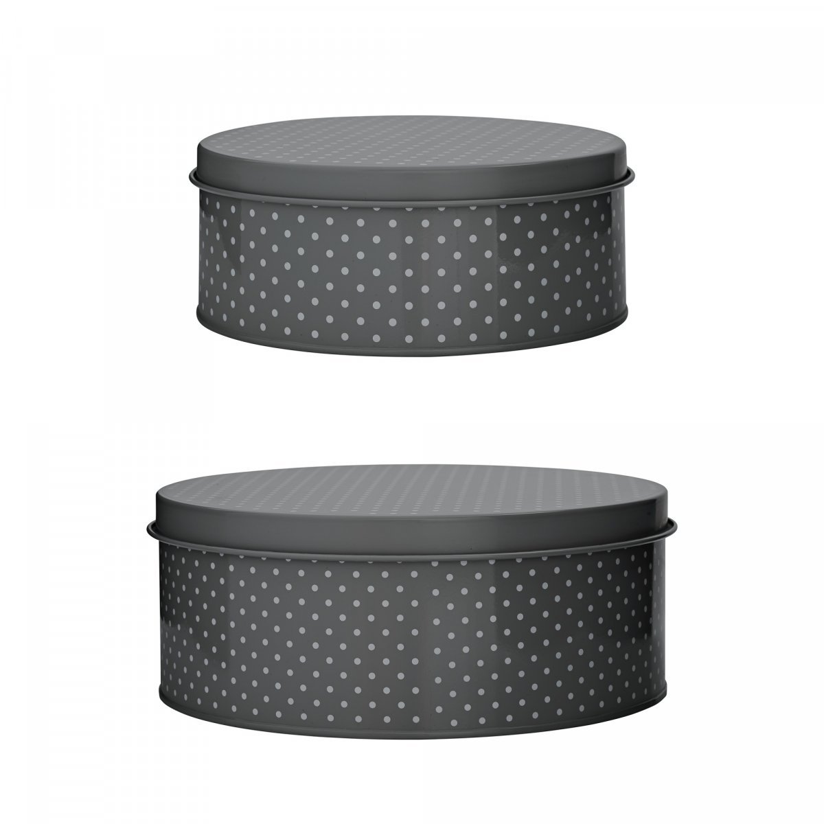 Käytännöllinen metallipurkki kannella. Kaksi kokoa: korkeus 7,5 cm x halkaisija 19 cm ja korkeus 10 cm x halkaisija 25 cm.