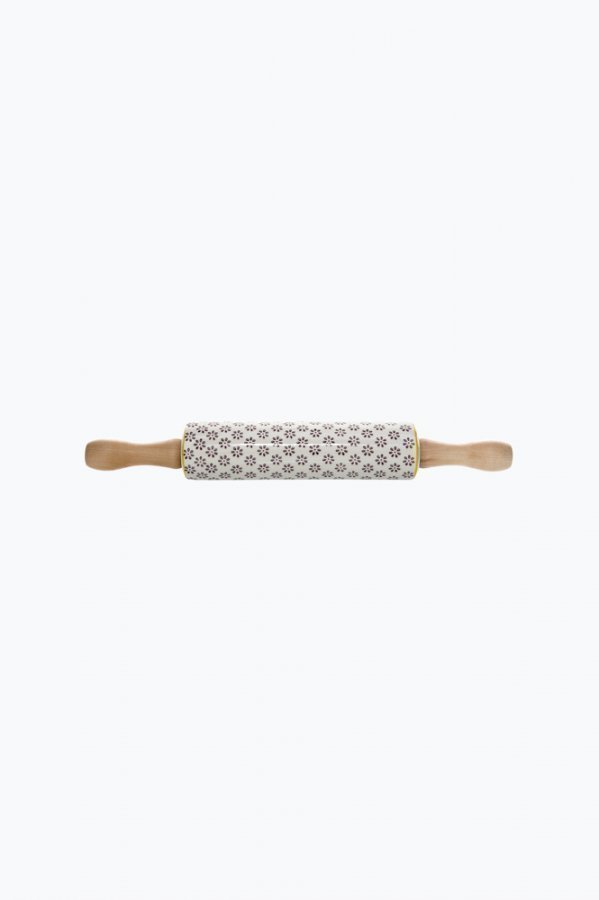 Kaulin kivitavaraa. Kuviollinen. Puukahvat. Halkaisija 6 cm, pituus 44 cm. Pestävä käsin