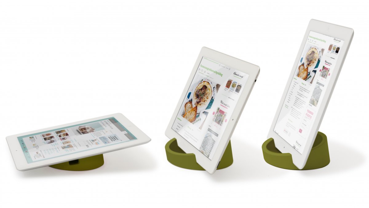 Silikoninen iPad-teline, johon saa asetettua iPadin reseptejä varten. iPadin voi asettaa telineeseen pystyasentoon, sivuttain tai selälleen. Telineen avulla seuraat ruokaohjeita helposti ilman, että sinun tarvitsee hyppiä kirjan sivuilta toiselle. Telineen saa helposti pyyhittyä ja pestyä. Telineitä löytyy monen eri värisenä.