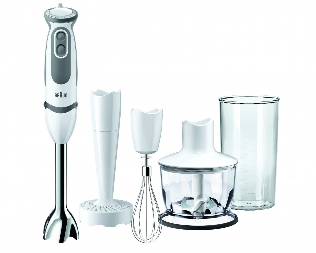Kätevä Braunin sauvasekoitin 750 watin moottorilla on oiva apuväline nopeaan prosessointiin. Ergonomisen kädensijan ansiosta sekoitin on mukava käyttää ja irroitettava muovinen varsi on suunniteltu niin, ettei se roiski. Terä sopii niin lihan, pähkinöiden, yrttien, sekä porkkanoiden hakkuuseen ja voit valita 21 eri nopeuden välillä. Voit myös vispata kananmunat tai kerman 600 ml kulhossa, joka tulee pakkauksen mukana. Sauvasekoitin on helppo puhdistaa ja säilyy pienessä tilassa. Settiin sisältyy:. 600 ml kannu. 1250 jäämurskain. 350 ml silppurikulho. Vispilä.