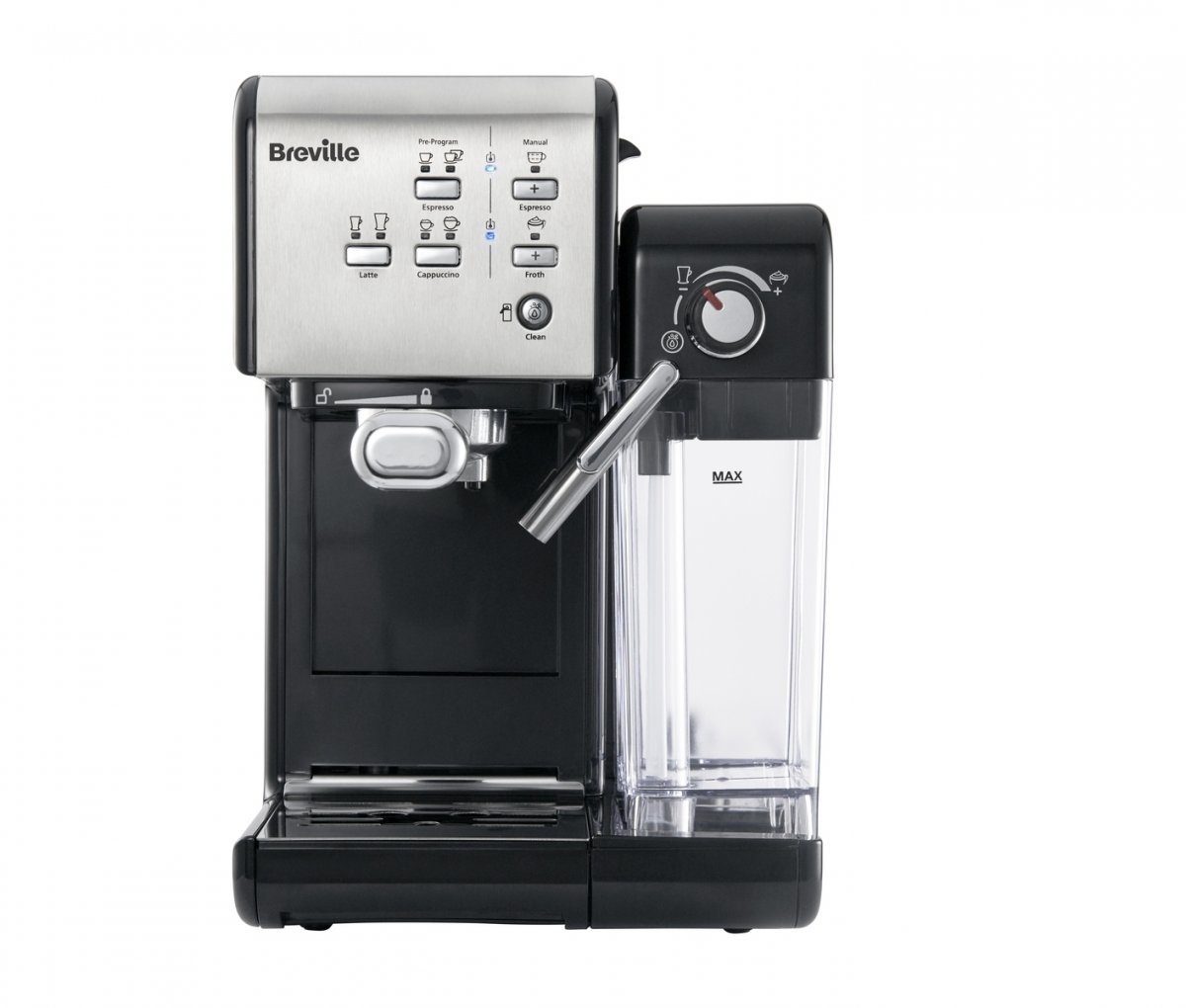 Brevillen espressokoneella saat varmasti täydellisen kupin kahvia joka päivä. Kone tekee helposti suosikkikahvisi oikealla voimakkuudella, sillä sitä voi säädellä yksinkertaisesti. Koneessa on automaattinen sammutustoiminto, mikä tarkoittaa että kun konetta ei käytetä, sammuu se kokonaan energian säästämiseksi. Tämän espressokoneen nimi on Prima Latte II, mikä on päivitetty versio edeltäjästään. Valmistaa täyteläisen espresson, cappuccinon ja laten, samalla tavalla kuin kahvilassakin. Prima Latte II on automatisoitu kahvinkeitin ”One touch” -toiminnolla, jolla voit valita tavallisen tai tuplaespresson, cappuccinon tai laten. Avoimen filtterisysteemin kanssa voit jauhaa kahvisi käyttämällä E.S.E POD tai käyttää perinteisesti jauhettua kahvia. Automaattinen maidon vaahdotin muuttaa maidon kevyeksi vaahdoksi. Prima Latte II -koneessa voit käyttää erilaisia maitoja, kaikkea soijamaidosta täysmaitoon ja voit valita minkälaisena haluat vaahtosi. Prima LAtten uusi versio on hiljaisempi ja siinä on puhdistustoiminto, joka aktivoituu nappia painamalla. Napin painalluksella haluamasi kahvi. • Tavallinen tai tuplacappuccino. • Tavallinen tai tuplaespresso. • Tavallinen tai tuplalatte. • Manuaalinen tila, jossa voit valmistaa kahvia. • Tekee vaahtoa valitusta maidosta. • Helppo puhdistusohjelma