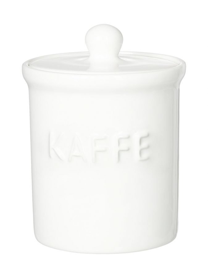 Pelkistetyn tyylikkäässä purkissa on kohopintainen teksti ja tiiviisti suljettava kansi. Purkin korkeus on 15 cm ja halkaisija 12 cm. Materiaali on lasitettua posliinia.