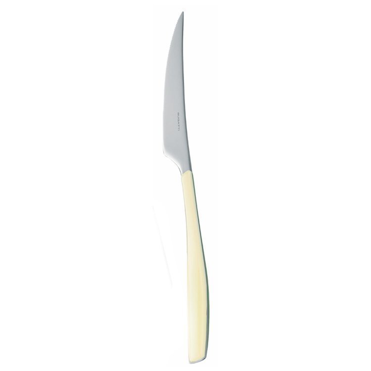 Aterimet 18/10 ruostumaton teräs, Kahva läpinäkyvää SAN-muovia.Paksuus: 2,5 mm.