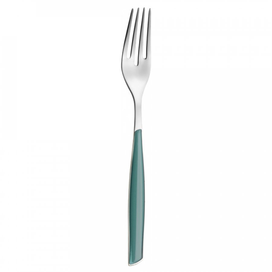 Aterimet 18/10 ruostumaton teräs, kahva kiiltävä SAN-muovi. Paksuus: 2,5 mm. Käsinpesua suositellaan. Kestää myös konepesun (max 50°C). Väri: celadon/vihreä.