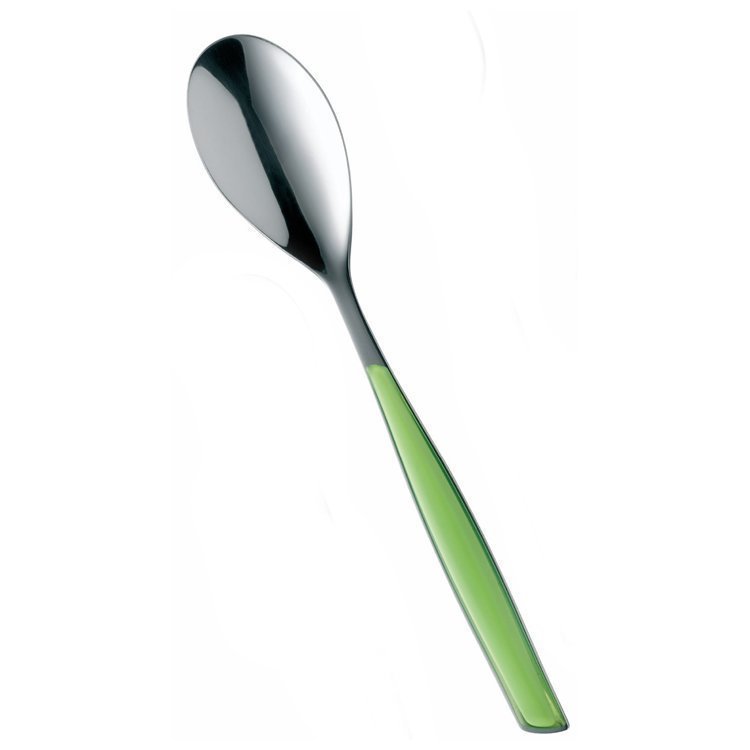Aterimet 18/10 ruostumaton teräs, Kahva läpinäkyvää SAN-muovia.Paksuus: 2,5 mm.