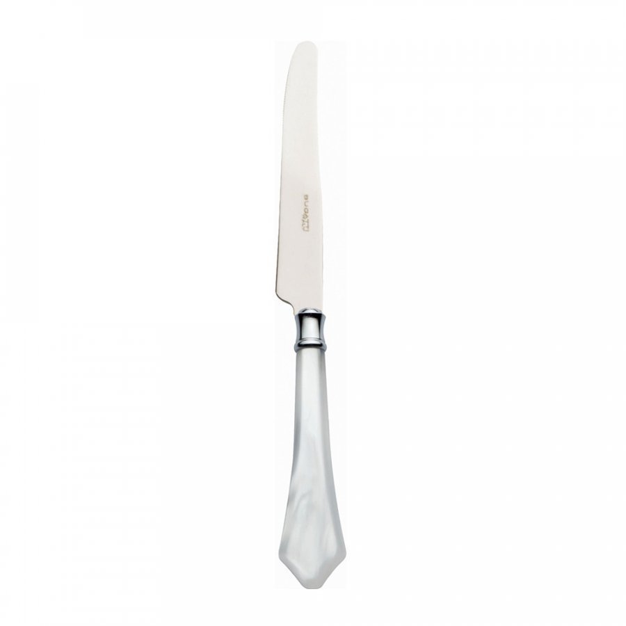 Verona on sarja värikkäitä ja kiiltäviä aterimia joka antaa kattaukselle näyttävyyttä. Sarja on nimetty kauniin italialaisen kaupungin Veronan mukaan joka on todellinen taiteen ja kulttuurin koti. Atermia on useissa eri ruostumattoman teräksen 18/10 väreissä yhteensopivilla kahvoilla Jälkiruokaveitsi jossa valkoinen kahva ja kiiltävä, kromattu metallirengas. Materiaali: ruostumaton teräs/akryyli. Käsinpesua suositellaan. Konepesunkestävä (max 50°C).