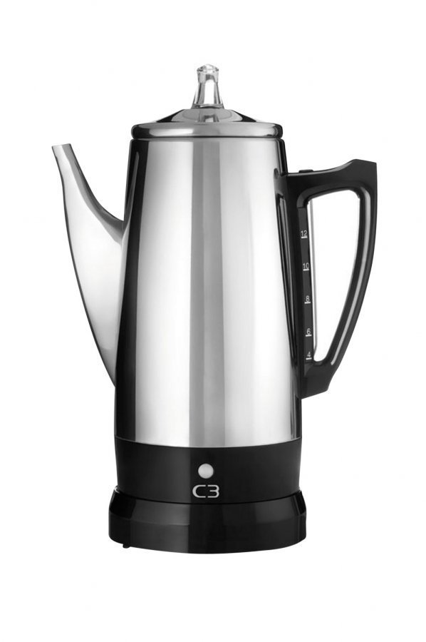 C3 Basic Perkolaattorilla valmistat kuumaa, aromikasta ja tuoretta kahvia. Perkolaattori on valmistettu kiillotetusta, laadukkaasta ruostumattomasta teräksestä. Tuotteen selkeälinjainen ja puhdas muotoilu ilmentää skandinaavista muotokieltä ja antaa laadukkaan vaikutelman. Perkolaattorilla valmistat kuumaa, aromirikasta ja tuoretta kahvia muutamassa minuutissa. Johdottoman tarjoilukannun ansioista tarjoilu on helppoa. Perkolaattori on perinteinen kahvinkeitintyyppi, joka kierrättää lähes kiehuvan kuuman kahvin useaan kertaan keittimessä, kunnes kahvi on vahvan aromikkaan makuista. Koska keittoaika ja kontakti veden kanssa on tavallista pidempi, suosittelemme käytettäväksi karkeaa pannujauhatusta tai pressokahvia. Perkolaattorilla keitetty kahvi on aina kuumaa ja vahvan makuista. – Tilavuus 4 12 kuppia – Kiillotettua ruostumatonta terästä – Merkkivalo – Veden mitta-asteikko kädensijassa – Johdoton tarjoilukannu – Teho: 500 W – Lämpimänäpitoteho: 50 W – Jännite: 230V – 50 Hz