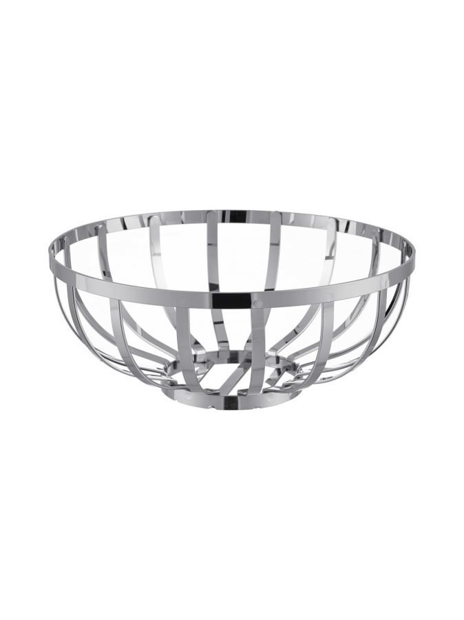 Pyöreässä hedelmäkorissa on sääteittäiset metallireunat. Korin halkaisija on 23 cm ja korkeus 9 cm. Materiaali on terästä.