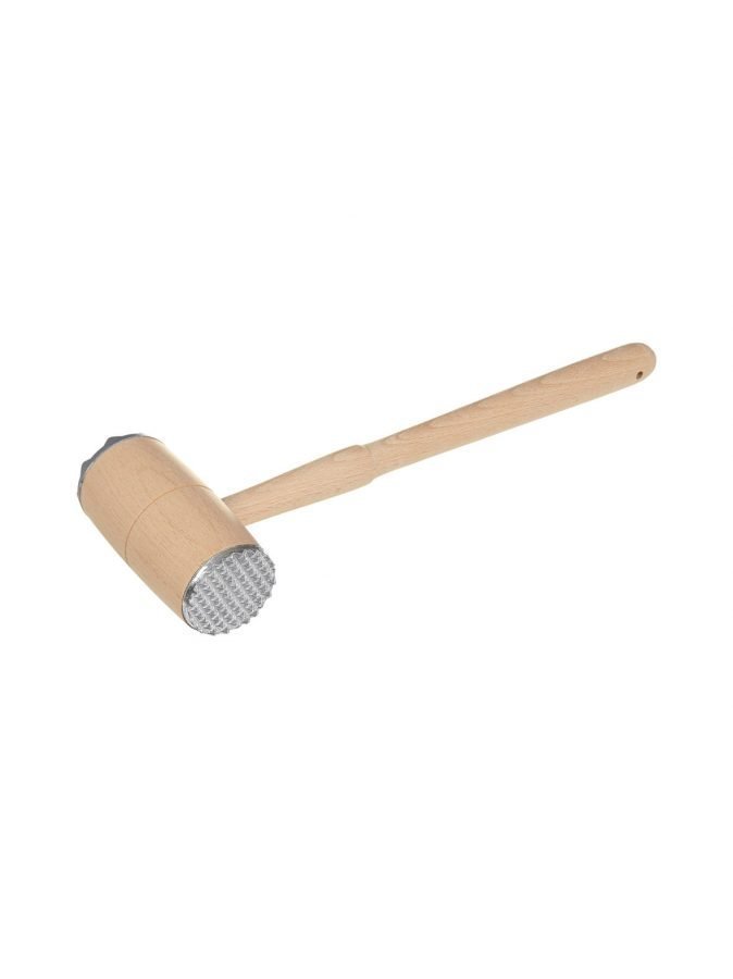 Puisessa lihanuijassa on molemmissa päässä metallinen, piikikäs levy. Materiaali on pyökkiä ja metallia. Pituus 27 cm.