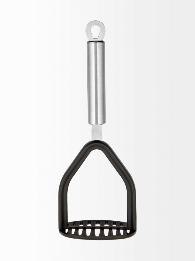 Perunoiden ja muiden keitettyjen vihannesten soseuttamiseen soveltuva survin on konepesunkestävää ruostumatonta terästä ja muovia. Pituus 27 cm.