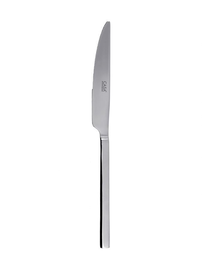 Tyylikäs ruokaveitsi on materiaaliltaan ruostumatonta terästä. Konepesu.