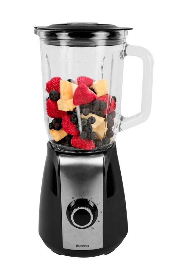 Valmista herkulliset smoothiet ja juomat, murskaa jäät helposti ja tee itse keittoja ja salsaa. 600W:n Champion CHBL210 -tehosekoitin selviytyy näistä kaikista tehtävistä helposti. 5 nopeutta ja syketoiminto, joilla voit valita oikean nopeuden sekoitettavien ainesosien mukaan. Tilava 1,5 litran lasikannu, jossa tarjoilua helpottava kaatonokka sekä selkeä mitta-asteikko. Kestävät terät ruostumatonta terästä. Irrotettavat terät on helppo puhdistaa. – Vetoisuus: 1,5 litran lasikannu – Teho: 600W – 5 nopeusasetusta ja syketoiminto – Kestävät terät ruostumatonta terästä – Murskaa myös kovia ainksia, kuten jäätä, pähkinöitä jne. – Turvalukitus – Lasikannun ja terät voi pestä astianpesukoneessa