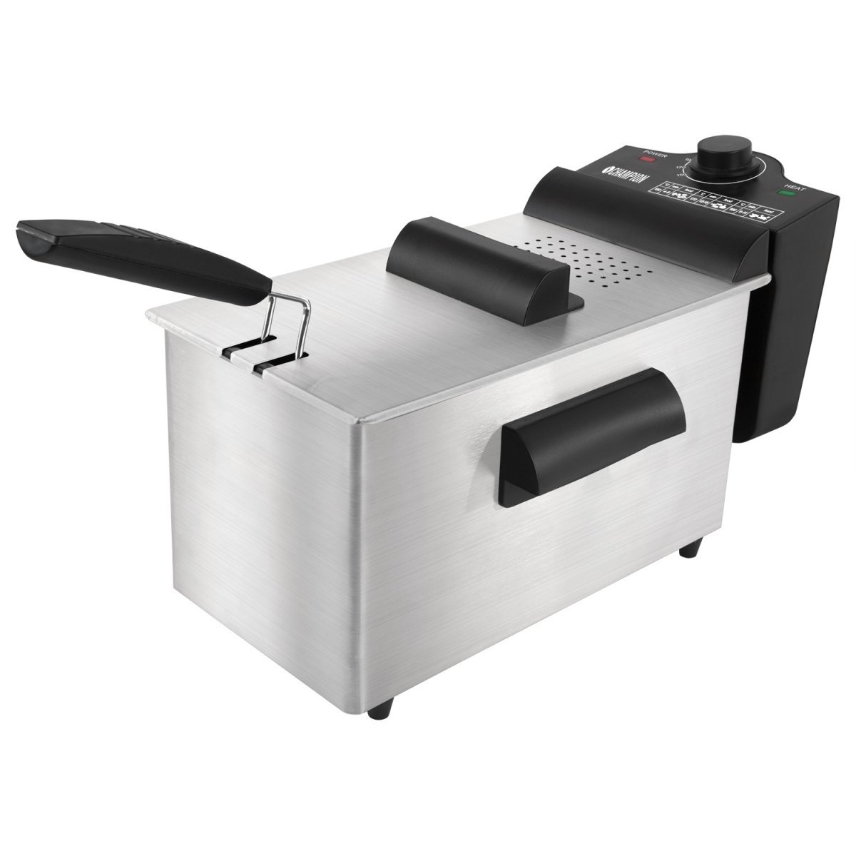 Championin uppopaistin on näppärä, kun haluat friteerata naposteltavia kotona. Tehokkaan 2100 watin moottorin ansiosta täydellinen paistotulos on taattu jokaisella käyttökerralla. Uppopaistin on valmistettu ruostumattomasta teräksestä ja on helppo säilyttää ja käyttää irrotettavan kannen ja taittuvan kahvan ansiosta. Termostaatilla asetat paistolämpötilan 130 ja 190 asteen välille ja kaksi lamppua syttyvät, kun paistin on valmis käytettäväksi. Paistimen kori on 3 litraa vetoisuudeltaan. CHFR030 on varustettu Cool Zone -toiminnolla joka pidentää öljyn käyttöikää. Öljysäiliö ja kansi ovat konepesun kestävät. . Materiaali: harjattu teräs. Paistolämpötila: 130-190°C. Irrotettava lämpöelementti ja öljysäiliö. Ruostumattomasta teräksestä valmistettu paistokori. Taittuva kahva. Tukevat jalat jotka eivät liu’u pöydällä. Säilytyspaikka johdolle. Teho: 2100 W. Kapasiteetti: 3 L.