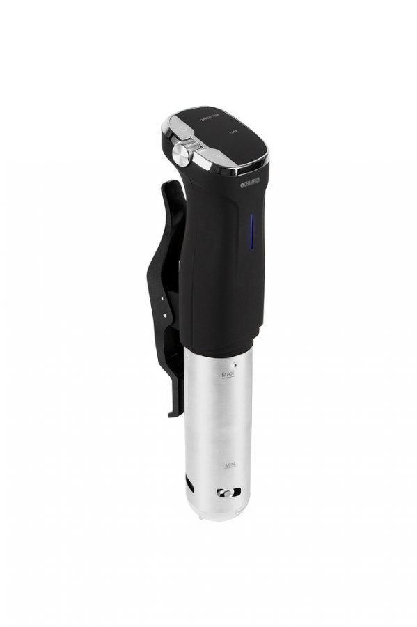 Haluatko tarjota täydellisesti valmistettua lihaa, jota saa muuten vain hienoista ravintoloista? Tässä oiva apuväline! Champion Sous Vide CHSV310 –sirkulaattorilla valmistat upeaa ravintolatasoista ruokaa kotona. Ja mikä parasta, se on uskomattoman helppoa! Sous Vide tarkoittaa "tyhjiössä", ja tätä kypsennysmenetelmää ovat ravintolat ympäri maailman käyttäneet kauan. Tyhjiöpakkaamalla lihan, kalan, kanan, ym. valmistettavan ruoan ennen sen laskemista sopivan lämpöiseen veteen saat upeita tuloksia. Aseta Sous Vide –sirkulaattoriin haluttu lämpötila, kiinnitä se kattilan/padan reunalle ja käynnistä ajastin – laite hoitaa itse loput. Ruoan kuivumisen riskiä ei ole, sillä laite pitää veden lämpötilan samana. Lämpötila pysyy samana +/- 0,1°C tarkkuudella kiertävän veden ansiosta. Tyylikäs design ja älykäs rakenne tekevät tästä tuotteen, jota haluat käyttää yhä uudestaan ja uudestaan. Selkeä näyttö ilmaisee lämpötilan ja paljonko asetetusta valmistusajasta on jäljellä. Ruostumatonta terästä olevalla säätimellä asetat helposti toivotun lämpötilan. Takana olevalla älykkäällä kiinnitysklipsillä kiinnität Sous Vide –sirkulaattorin helposti kaikenlaisiin säiliöihin. Ominaisuudet: – Kapasiteetti jopa 15 litraa – Kierrättää 8,2 l vettä/min – Enimmäislämpötila: 92°C – Irrotettava kuori helpottaa puhdistusta – Lämpötilan säätö sivussa olevalla kätevällä säätimellä – Tarkkuus: +/- 0,1 °C – Näyttö ilmaisee lämpötilan ja valmistusajan – Virtajohdon pituus: 1,2 m – Takana kiinnitysklipsi – Teho: 800 W – 220-240 V/50 Hz