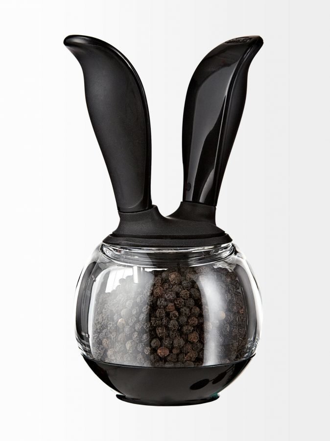 Innovatiivisesti muotoiltua pippurimyllyä voi käyttää yhdellä kädellä. Pippurin jauhatusta voi säätää hienosta karkeaan pohjassa olevan säätölevyn avulla. 8,5 x 15 cm.