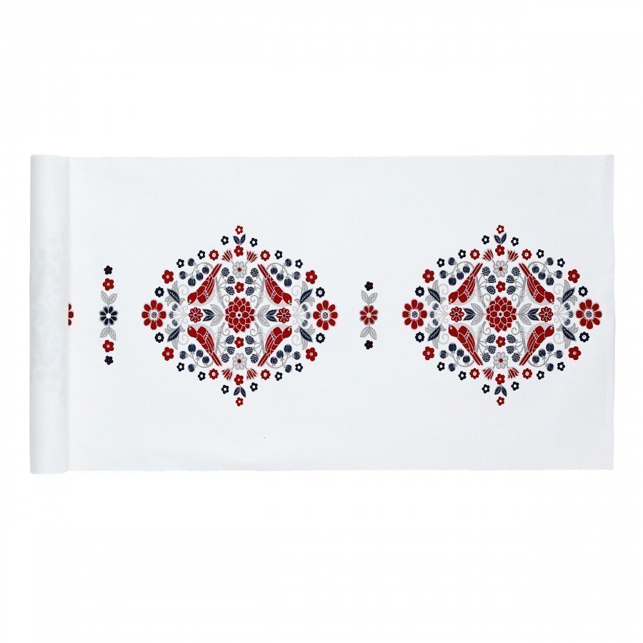 Kaitaliina, jossa on kaunis painettu lintukuvio. Suojaava ja koristeellinen. Konepesu 40 asteessa.
