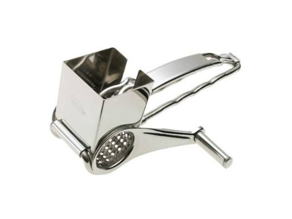 Monenlaisten juustojen raastamiseen soveltuva salonkikelpoinen raastinmylly.