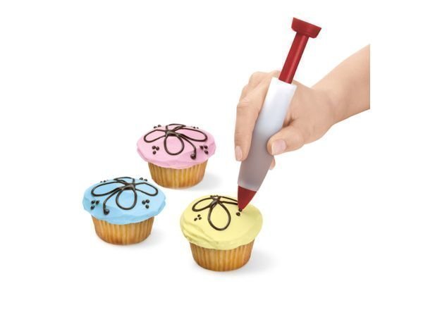 Cuisipro koristelukynällä koristelet syntymäpäiväkakkuun päivänsankarin nimen ja vielä iänkin siististi ja nopeasti.