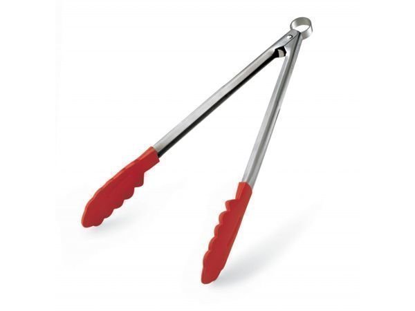 Pitkät Cuisipro silikonipihdit pitävät huolen siitä, että sormet eivät kuumene liikaa, kun käännät pihvejäsi grillissä.