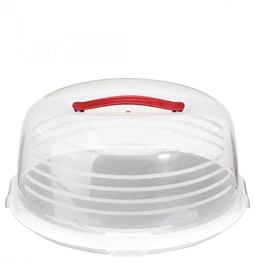 Pyöreä Curver kakkukupu, joka sopii muotonsa puolesta erityisen hyvin täytekakkujen säilytykseen ja kuljettamiseen. Kakkukuvussa on luonnonvalkoinen pohja, läpikuultava kupu ja punainen kahva. Kakkukuvun koko 35 x 15 cm. Sisämitat: korkeus 10,7 cm ja leveys 27,5 cm.