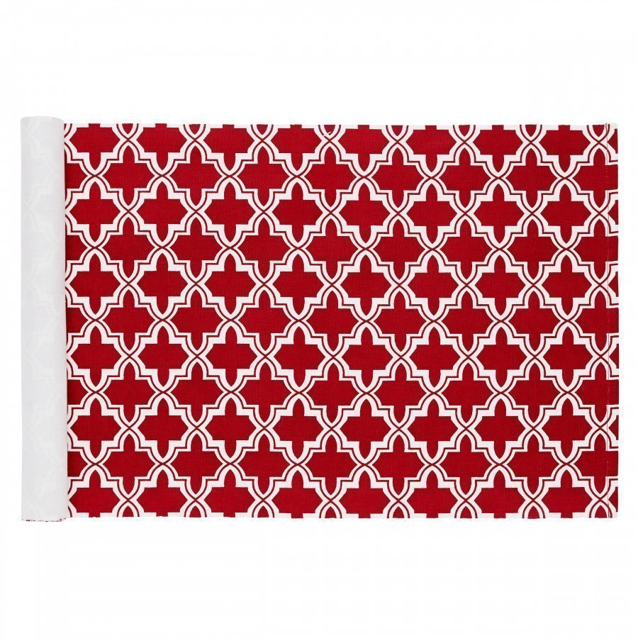 Jouluinen kapearaitainen ribbikaitaliina, jossa painettu marokkolaistyylinen kuviointi. Koristeellinen ja käytännöllinen ja samalla suojaa pöytää. Konepesu 40 asteessa.