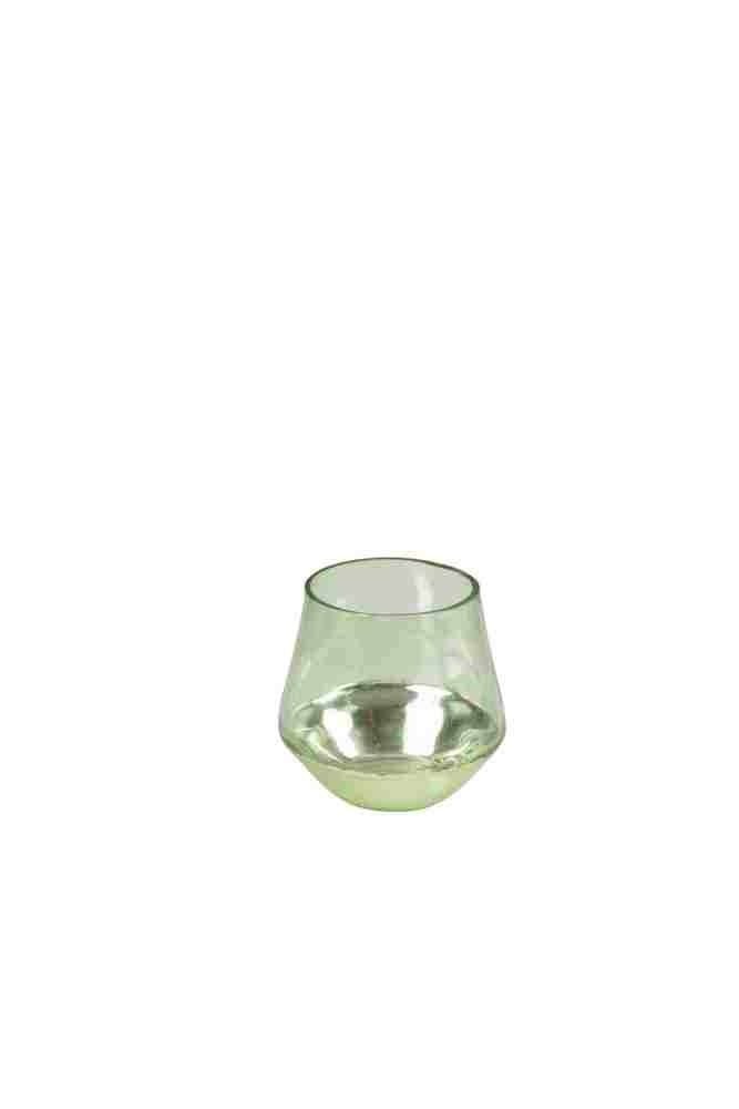Pieni kaunis kynttilälyhty vihreänsävyisellä lasilyhdyllä ja hopeanvärisellä alusella. Lyhty luo kauniin valon loisteen kotiin.