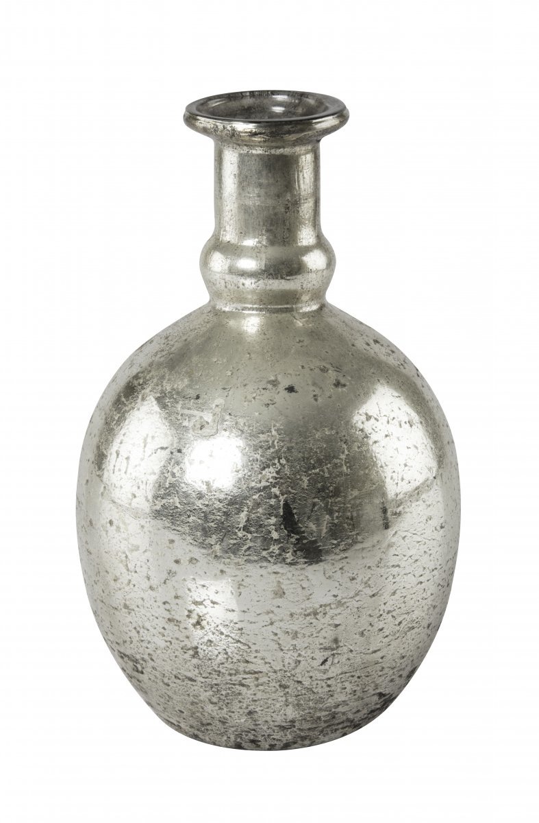 Kaunis pieni maljakko hopeoidusta lasista. Kaunis yksittäisten kukkien tai koristeiden esillepanoon.