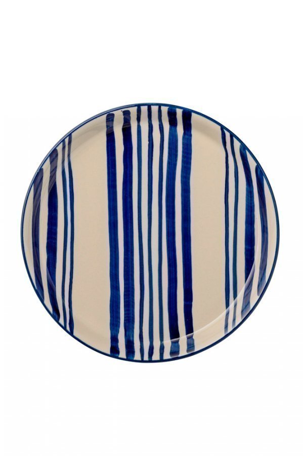 Keramiikkalautanen, jossa käsin painettu raidallinen kuvio. Kestää konepesun. Ø 20 cm.