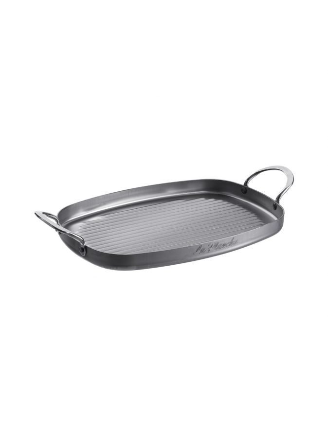 Kohoraidoitettu teräksinen grillipannu antaa ruoalle kauniin ruskistuneen ja rapsakan pinnan. Sopii kaikille liesityypeille, myös induktiolle. Mitat ovat 38 x 26 x 2,5 cm.Materiaali on hiiliterästä. Käsinpesu.