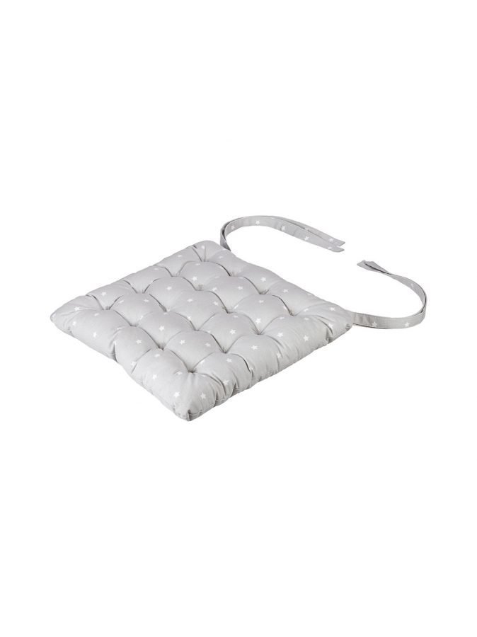 Kova istuin muuttuu miellyttävämmäksi kun sen päälle asettaa pehmeän istuintyynyn. Kahdessa kulmassa on nauhat, joilla tyynyn voi sitoa paikalleen. Tähtikuvioidun tyynyn päällikangas on 100 % puuvillaa, täyte on 100 % polyesteriä. Konepesu 40 °C.