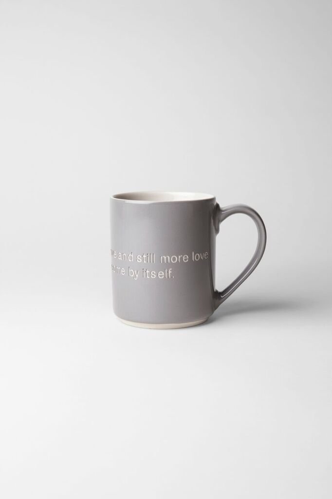 Design House Stockholm -tuotemerkin savinen muki Astid Lindgrenin kirjoittamalla tekstillä englanniksi. Mukin vetoisuus on 35 cl ja se on väriltään harmaa.