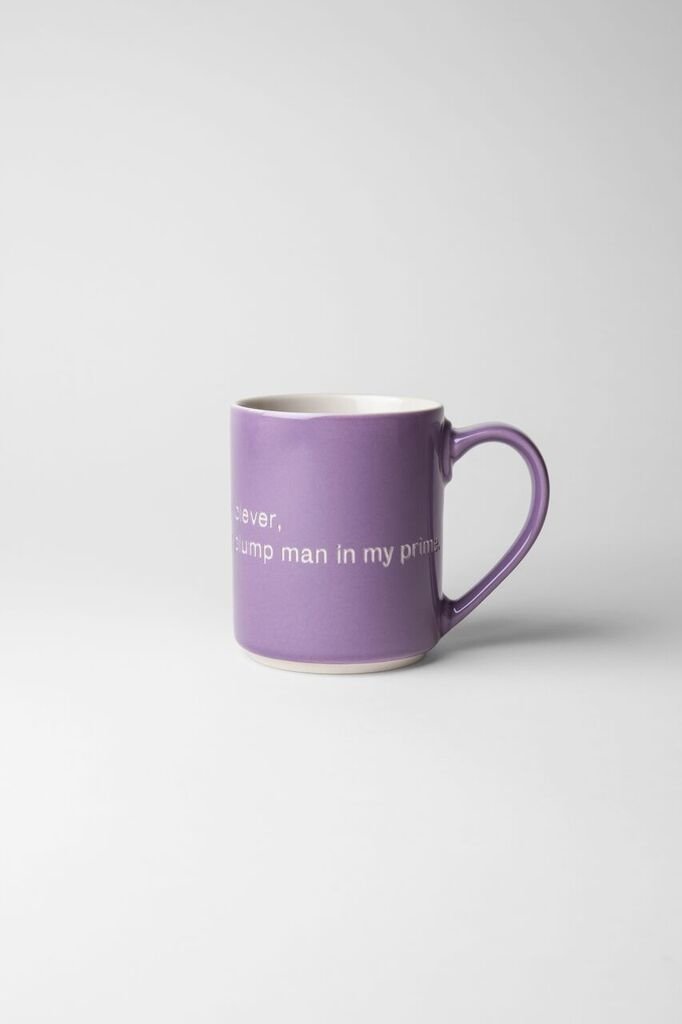 Design House Stockholm -tuotemerkin savinen muki Astid Lindgrenin kirjoittamalla tekstillä englanniksi. Mukin vetoisuus on 35 cl ja se on väriltään liila.